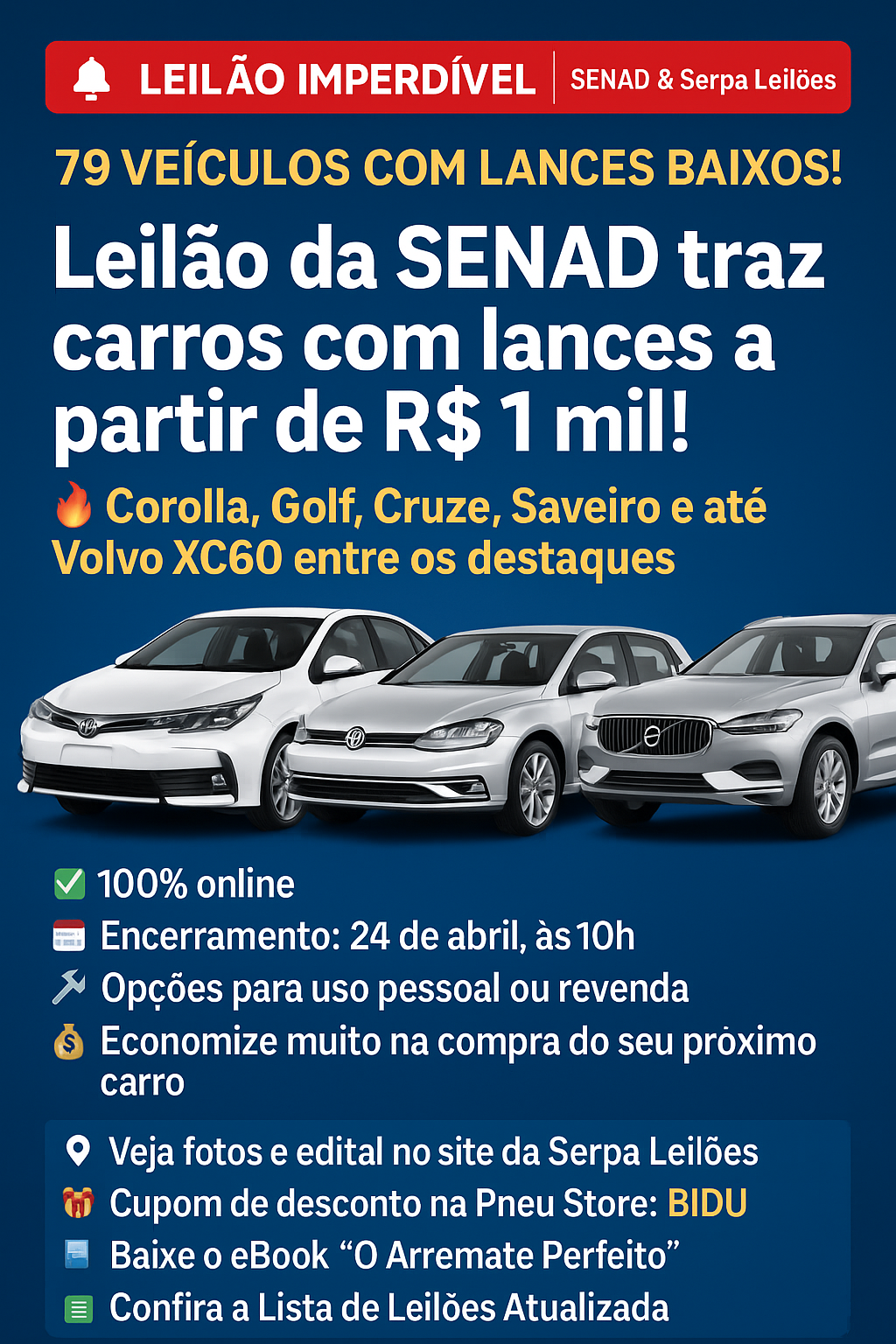 Atenção, arrematantes! A Secretaria Nacional de Políticas Sobre Drogas e Gestão de Ativos – SENAD, em colaboração com a Serpa Leilões, está promovendo um leilão…