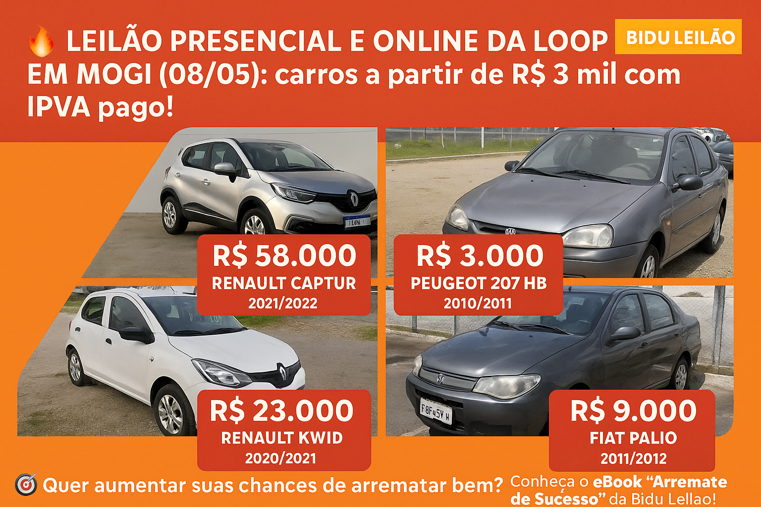 Fala, Biduzada! 👊 Se liga que no dia 06 de maio de 2025 (terça-feira), às 11h, tem leilão presencial e online direto de Mogi das…