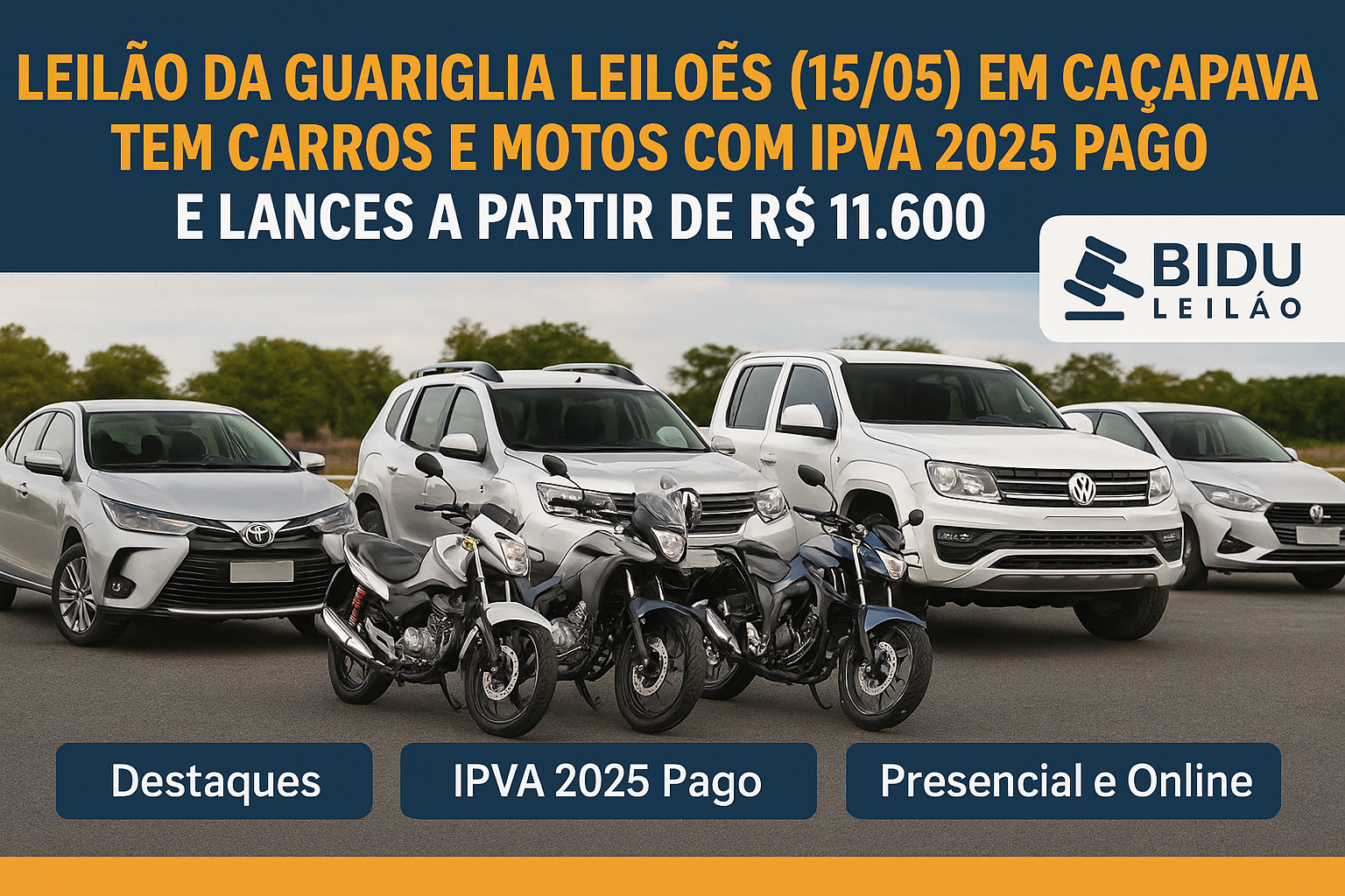 Se você está de olho em oportunidades para arrematar veículos com IPVA 2025 quitado, essa é sua chance! No dia 15 de maio, às 9h…