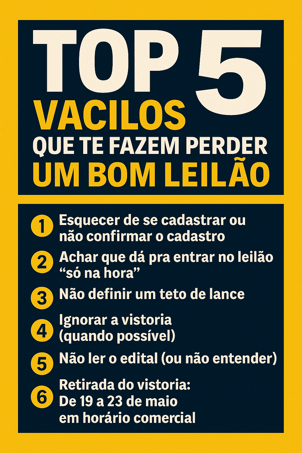 Fala, Biduzada! 😎Você tá ligado que no mundo dos leilões, cada segundo conta. Mas tem gente que, por bobeira ou falta de atenção, acaba perdendo…